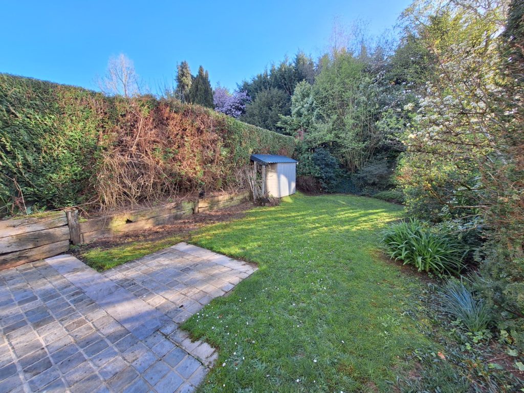 Cette jolie maison se compose d’un hall d’entrée avec vestibule et toilette, un garage avec porte automatique, d’une belle cuisine américaine ouverte sur un grand living avec feu ouvert, une véranda type bowindow, de 3 chambres, un bureau, un beau dressing, une salle de bain, une salle de douche, 2 toilettes et d’un jardin orienté Sud.